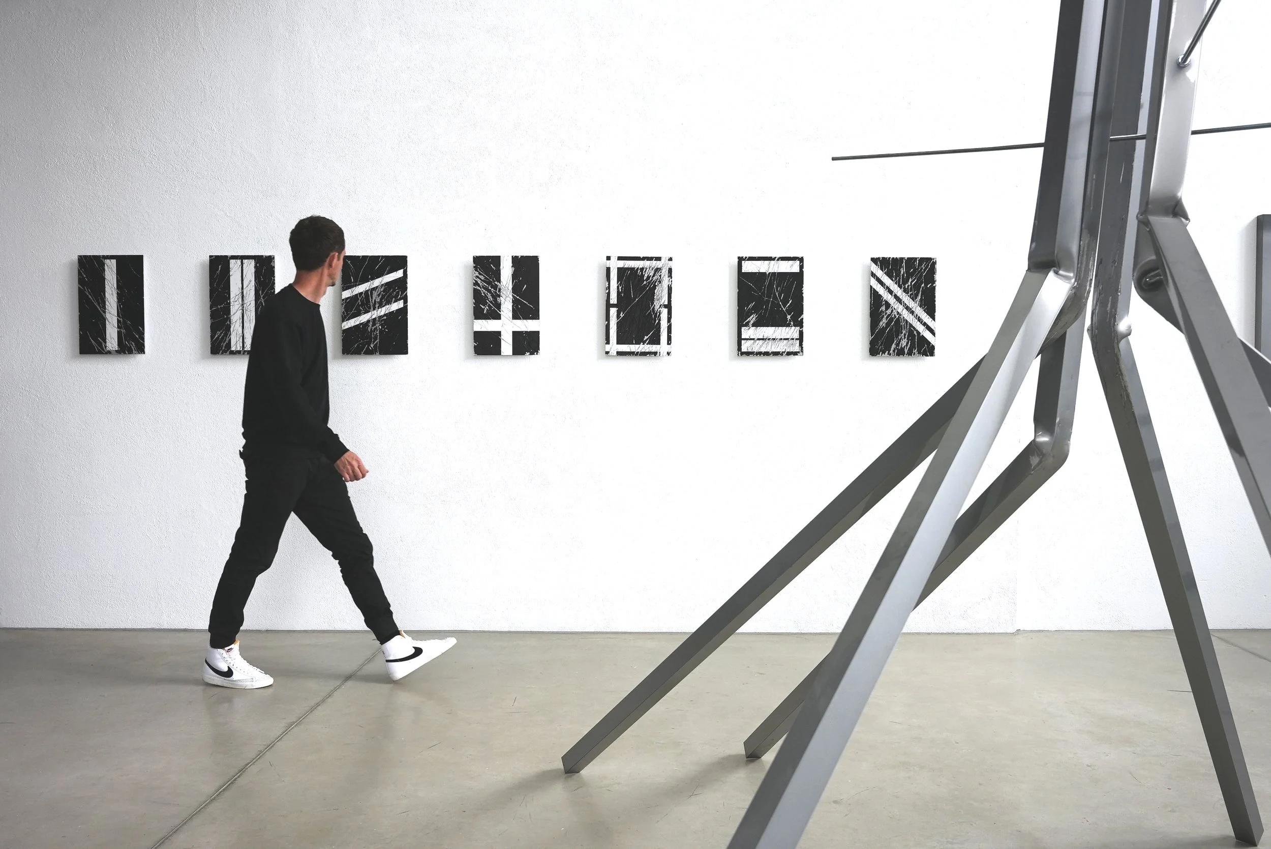 Originally trained in photography, he predominantly experiments with sculpture, painting and site-specific installation. His works have roots in minimalism, conceptualism and architecture.